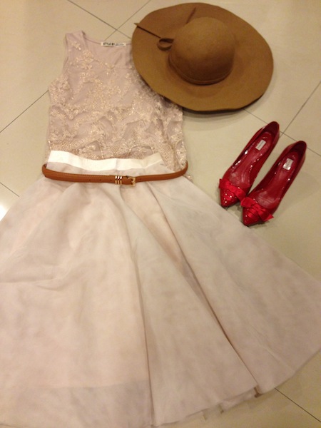 本來自己準備的是這種大帽緣的帽款 後來發現小貓老師的更復古、更有味道,也不會破壞髮型,所以戴上後就沒拿下來了 哈哈 蕾絲上衣是之前在五分埔挖到的寶;裸色紗裙是在淘寶買到的驚奇商品!:p 本來不太期待實品的,沒想到穿上後效果超好!還非常顯瘦唷!台幣五百元有找~ 兩件搭起來簡直就像是本來就是一套的呀~哈哈哈 (得意) |