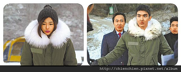除了雪地裡的定格接吻之外, 千頌伊身上的這款白色水貂毛軍外套也受到相當的矚目度